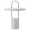 Portable lamp by Stelton with modern, stripped design in iron with practical three-step dimmer to provide a warm and atmospheric light. It has a barrel-shaped base with flat lampshade with practical handle at the top to easily move around at home. The portable lamp has high-quality material for everyday use. Charging time is approximately 13 hours (battery from 0-100%). Highest brightness: 8 hours of light, Medium brightness: 20 hours of light, Lowest brightness: 75 hours of light.