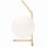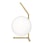 IC Lights T1 Tischlampe von Flos mit einem eleganten, poetischen Design mit einer typischen Sphäre aus mundgeblasenem Glas an der Kante einer Metallstange.