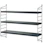 Regal von String mit einem klassischen, modularen Design mit einem zeitlosen Ausdruck. Es hat drei Regalböden mit zwei Wandpaneelen. Das Regal hat ein minimalistisches, stilvolles Gefühl und eine kleine, praktische Größe perfekt für Orte mit wenig Platz.