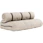 In drie eenvoudige stappen kun je de functie van de bank veranderen: klap de zitting uit, maak de gespen van de opgerolde rugleuning los en stapel de matrassen op elkaar om een luxueus dik bed te creëren dat de hele nacht comfort biedt. Dankzij de royale breedte en dikte van de futon is de ervaring zowel ondersteunend als uitnodigend.